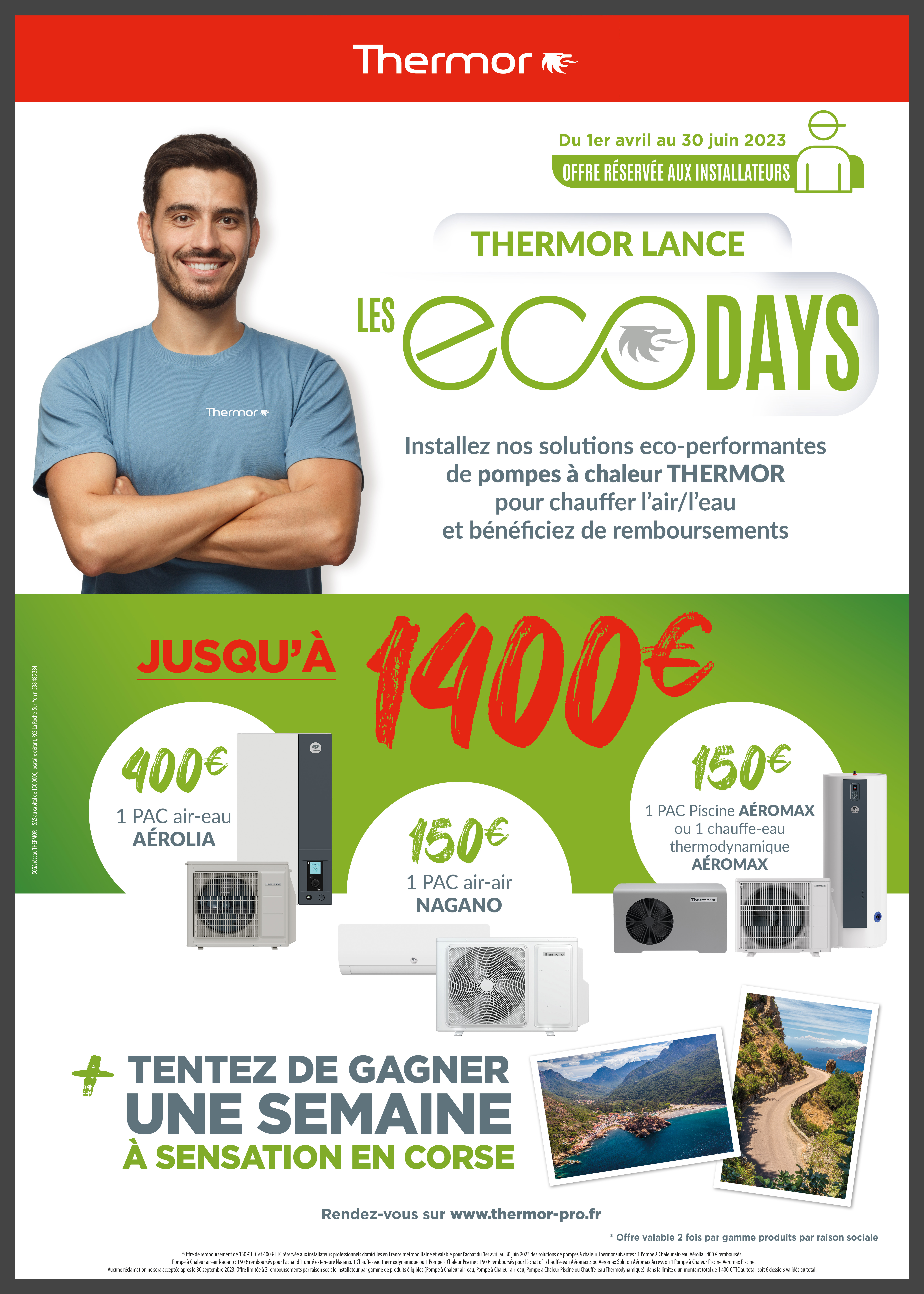 1. ACHETEZ ET INSTALLEZ NOS SOLUTIONS eco-performantes de pompes à chaleur Thermor entre le 1er avril et le 30 juin 2023 chez votre distributeur habituel :